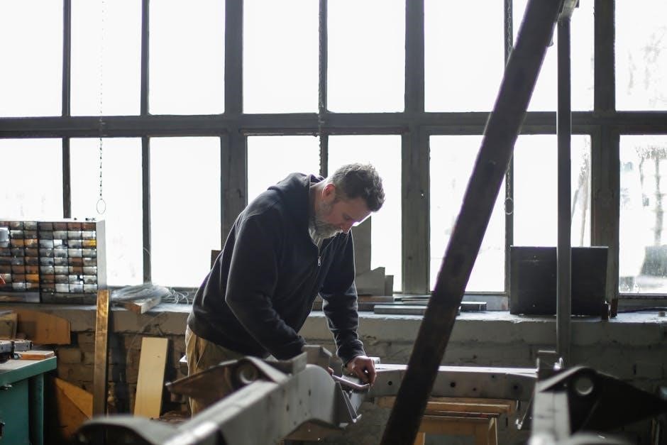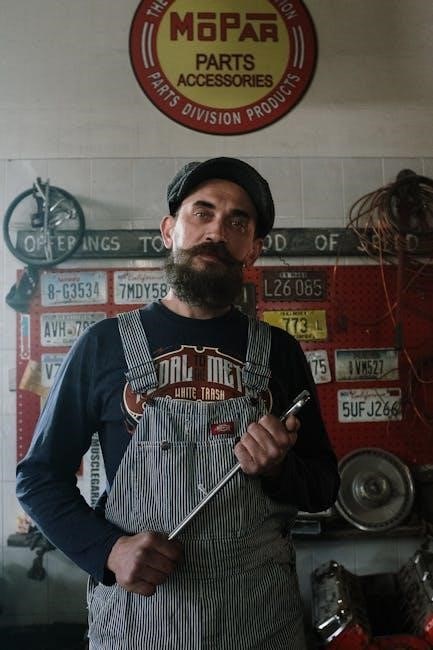 The Craftsman 3/4 HP garage door opener manual includes a detailed parts diagram and visual guide to help users identify and locate components. This section provides a clear breakdown of the opener’s structure, highlighting key parts such as the motor, rail, remote control, and sensors. The visual guide offers step-by-step illustrations for assembly, disassembly, and repair, making it easier to understand complex processes. Users can refer to this guide to troubleshoot issues or replace worn-out parts. The diagram also labels each component, ensuring accurate identification and simplifying the repair process. For those unfamiliar with garage door openers, the visual guide serves as an essential tool for DIY maintenance and repairs. By following the illustrations, users can ensure proper installation and avoid potential safety hazards. This resource is particularly useful for visual learners and those who prefer hands-on problem-solving.